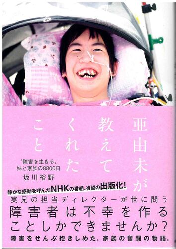 先日ぷかぷかに取材に来たEテレのディレクター坂川さんの書かれた本。 あゆちゃんは坂川さんの妹。やまゆり園事件の犯人が発した 「障害者は不幸を作ることしかできません」 という言葉に猛烈な怒りを覚え、あゆちゃんの介護をしながら家族にカメラを向けた…
