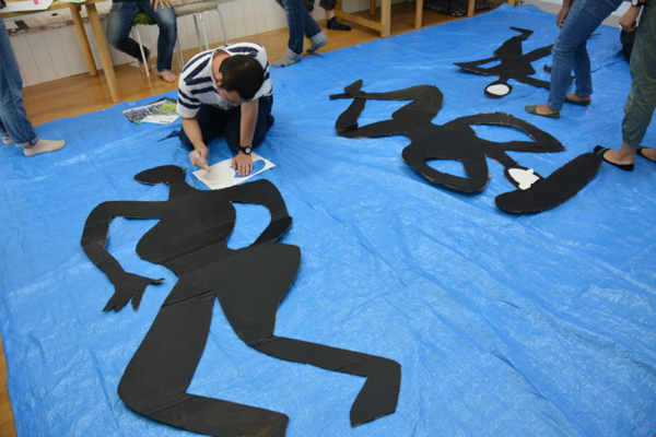 完成したモデルを壁に飾ります。壁に飾ったとたん、モデルが生き始めます。まるで命を吹き込まれたよう。型紙のデザインの力とそれに命を吹き込んだみんなの力です。