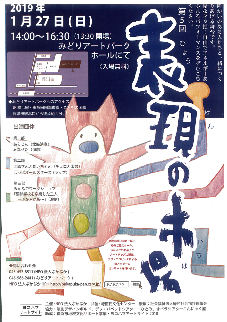 1月27日(日)に第5回「表現の市場」を開きます。場所は横浜線長津田駅前みどりアートパークホールです。